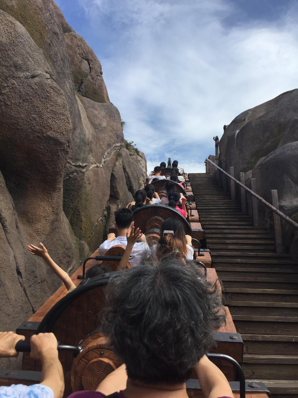 虽然7个小矮人矿山车是仅次于飞越地平线的第2热门项目,但是我觉得比飞越地平线好玩,更刺激,过山车的角度变化多,内容又丰富,最喜欢矿山里7个小矮人的音乐HEIGH HO,永远给我们快乐地感觉,每次驶入山洞,我都会跟着哼起来。