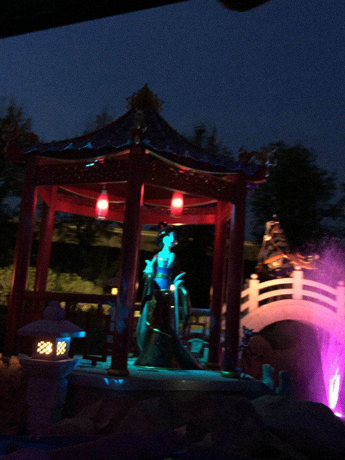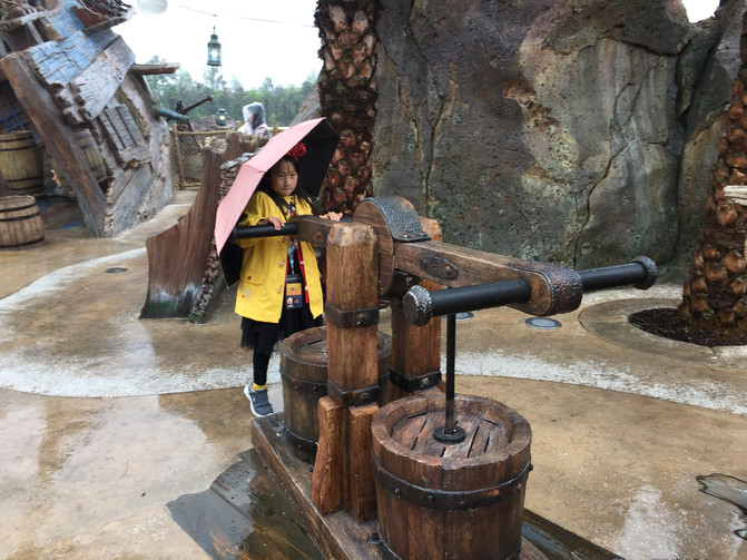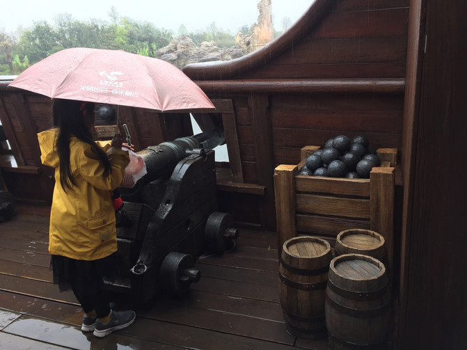 这个也是4星推荐的项目哦。一艘珍珠号可以坐30人左右,全园最大的穹幕4D电影,全程模仿海底效果,刚驶入旁边就是餐厅,我们都很迷惑就餐人员怎么不看着我们。岸边的杰克船长突然动了起来,用怪怪的口音介绍着这次旅程,说了句:下去吧。突然我们的船瞬间就沉到了海底,周围到处是美轮美奂的珠宝,沉落的宝藏。接着双方开始交战,我们的小船就在中间,我能非常清晰地看到左边的船慢慢伸出炮口,我们又顺着水流冲了出去,非常震撼。(闪光灯拍摄时,抬头哦)