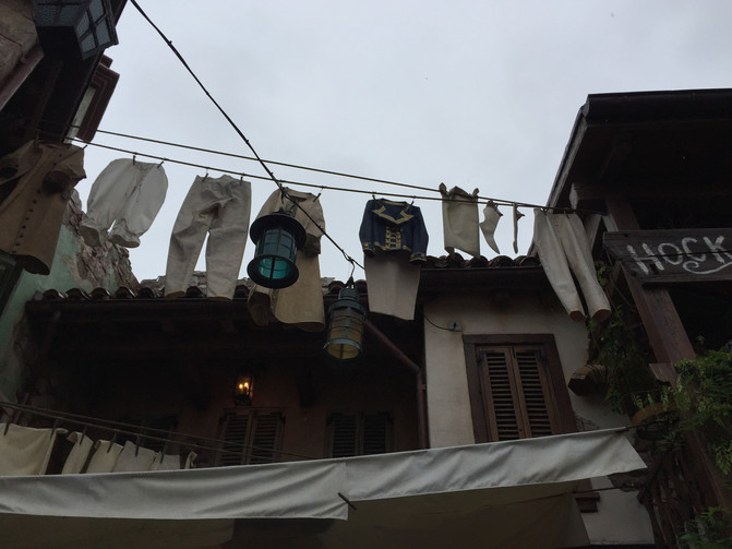 这里不光有网红肋排套餐,更可以和加勒比海盗游玩项目的游客挥手互动。午餐时分,顾客特别多,特意早早去,在水边找到了位置。